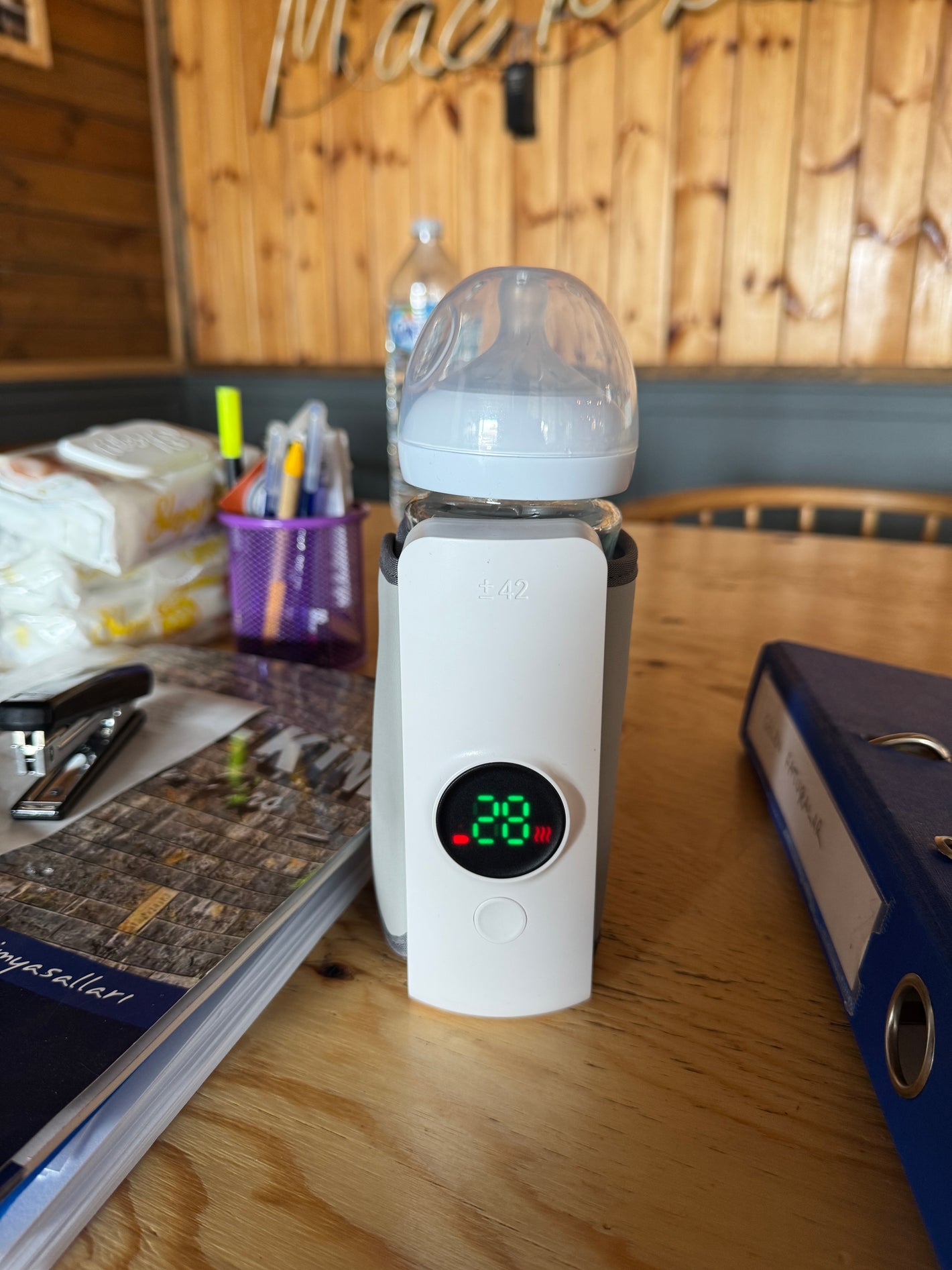 Ürün şarjlıdır. Tek şarj ile gün boyu kullanılabilir. Yanınızda priz aramanıza gerek kalmadan evde, dışarıda veya seyahatte bebeğinizin mamasını kolayca ısıtabilirsiniz.